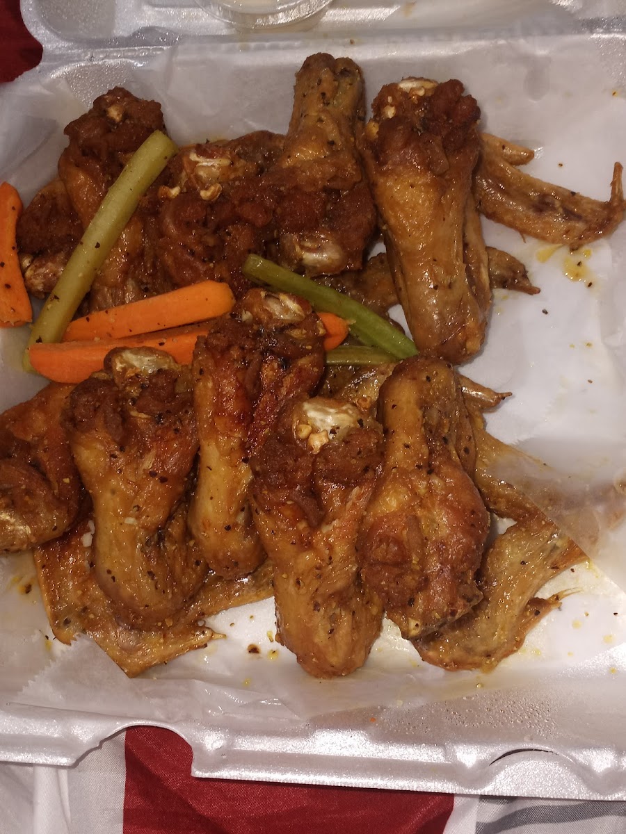 The menu is a celebration of comfort food, featuring not only their signature hot wings but also an impressive selection of sandwiches, salads, and snacks. The wings, generously seasoned and cooked to perfection, are complemented by a variety of sauces that cater to all spice levels. Customers rave about the juicy, crispy texture of the wings, with some preferring them fried hard for that extra crunch. Each order comes with celery and carrot sticks, enhancing the dining experience and adding a refreshing crunch.